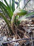 葉は常緑なので,ほとんど緑色のないこの時期の林床では大変良く目立ちます。 |
